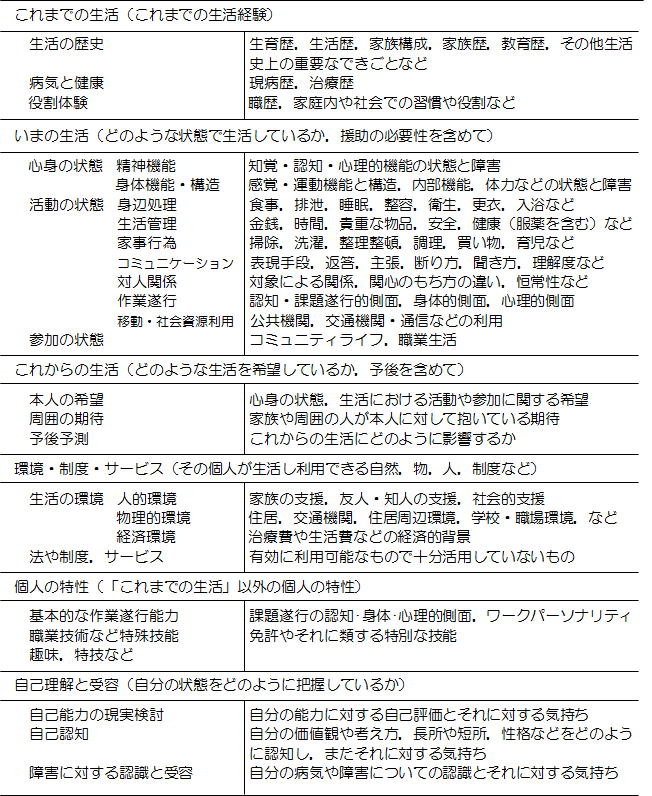 - 生活環境: 居住環境や生活リズム、家族や周囲の人々との関係性を理解します。